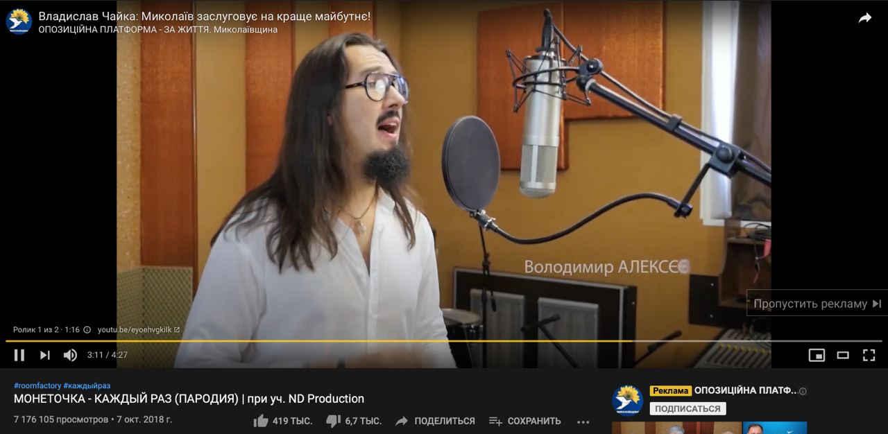 — Сегодня мне написали, что с удивлением увидели моё лицо в открытой политической агитации с логотипами партии одного из кандидатов в мэры Николаева. Я был в шоке и реакция была незамедлительной. Меньше чем за час конфликт был исчерпан, и партия удалила рекламный ролик c моим участием с больше чем 10 тысячами просмотров у себя на YouTube и в Facebook, - рассказал Владимир Алексеев.