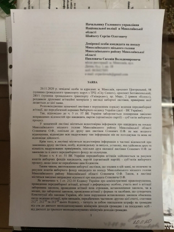 В региональной организации партии «Пропозиція» написали заявление в полицию из-за распространения по Николаеву листовок, направленных на дискредитацию кандидата на должность городского головы Александра Сенкевича.
