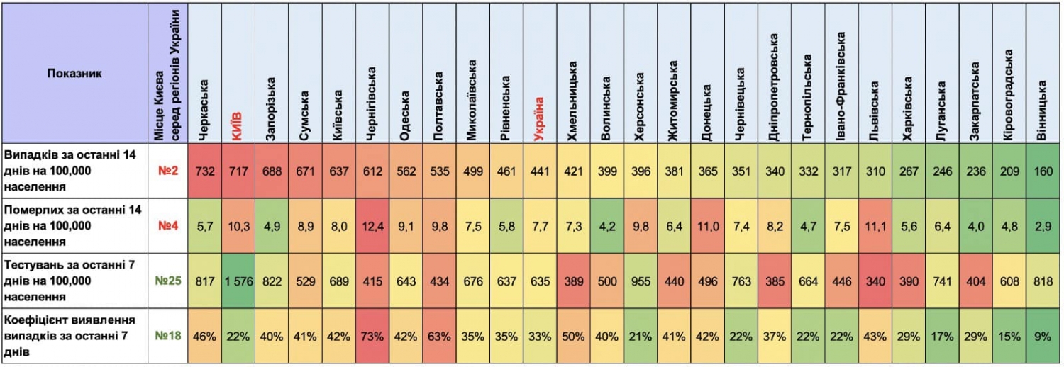 В Украине самыми критическими по уровню заболеваемости и смертности от COVID-19 являются Черниговская и Полтавская области. Самая лучшая ситуация по контролю за коронавирусом наблюдается в Винницкой области.