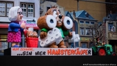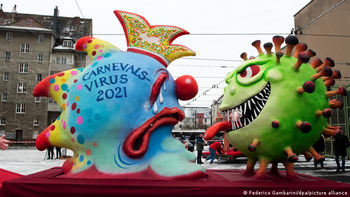 Из-за пандемии карнавал в Германии в этом году отменили, но по Дюссельдорфу провезли сатирические повозки, а в Кельне устроили кукольное шествие.