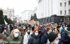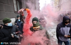 После акции под Офисом президента колонна из нескольких сотен участников двинулась к Офису генпрокурора. Протестующие скандируют лозунги об отставке Ирины Венедиктовой. Активисты зажгли файеры, также слышны звуки разрывов петард.