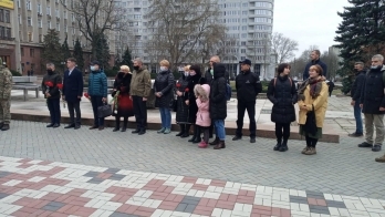 Участники акции спели гимн Украины, зажгли лампадки и возложили цветы к мемориалу.