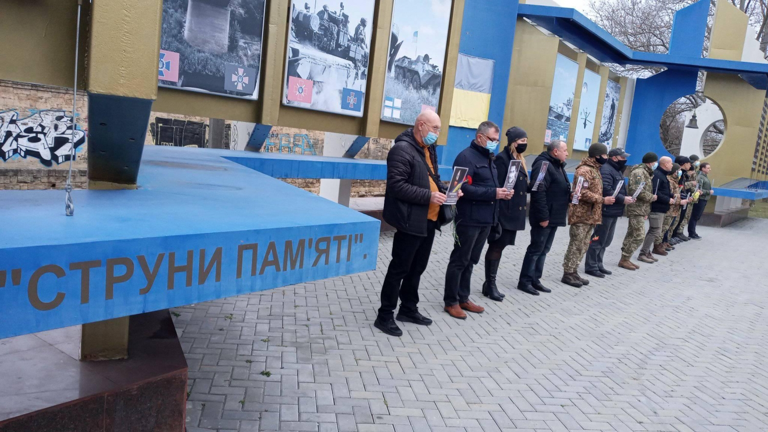 Присутствовали военнослужащие николаевского гарнизона, ветераны АТО, семьи погибших, волонтеры, чиновники. В руках держали фотографии героев, вслух зачитали обстоятельства смерти на фронте.