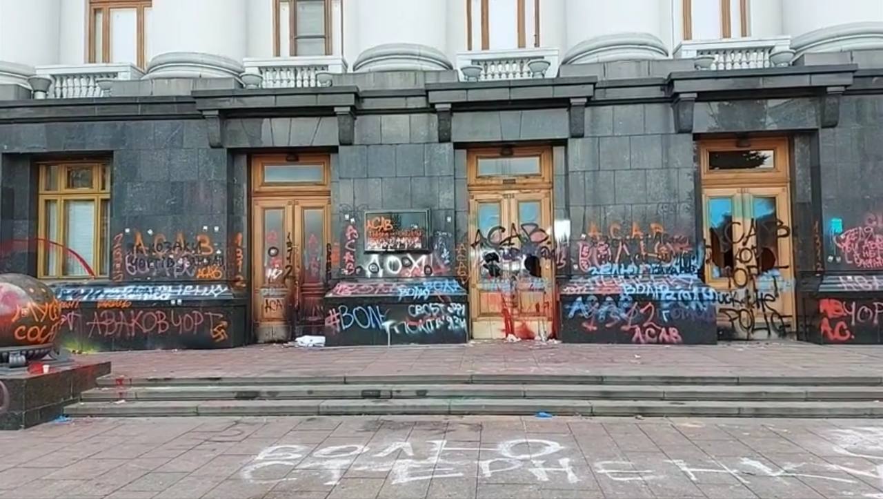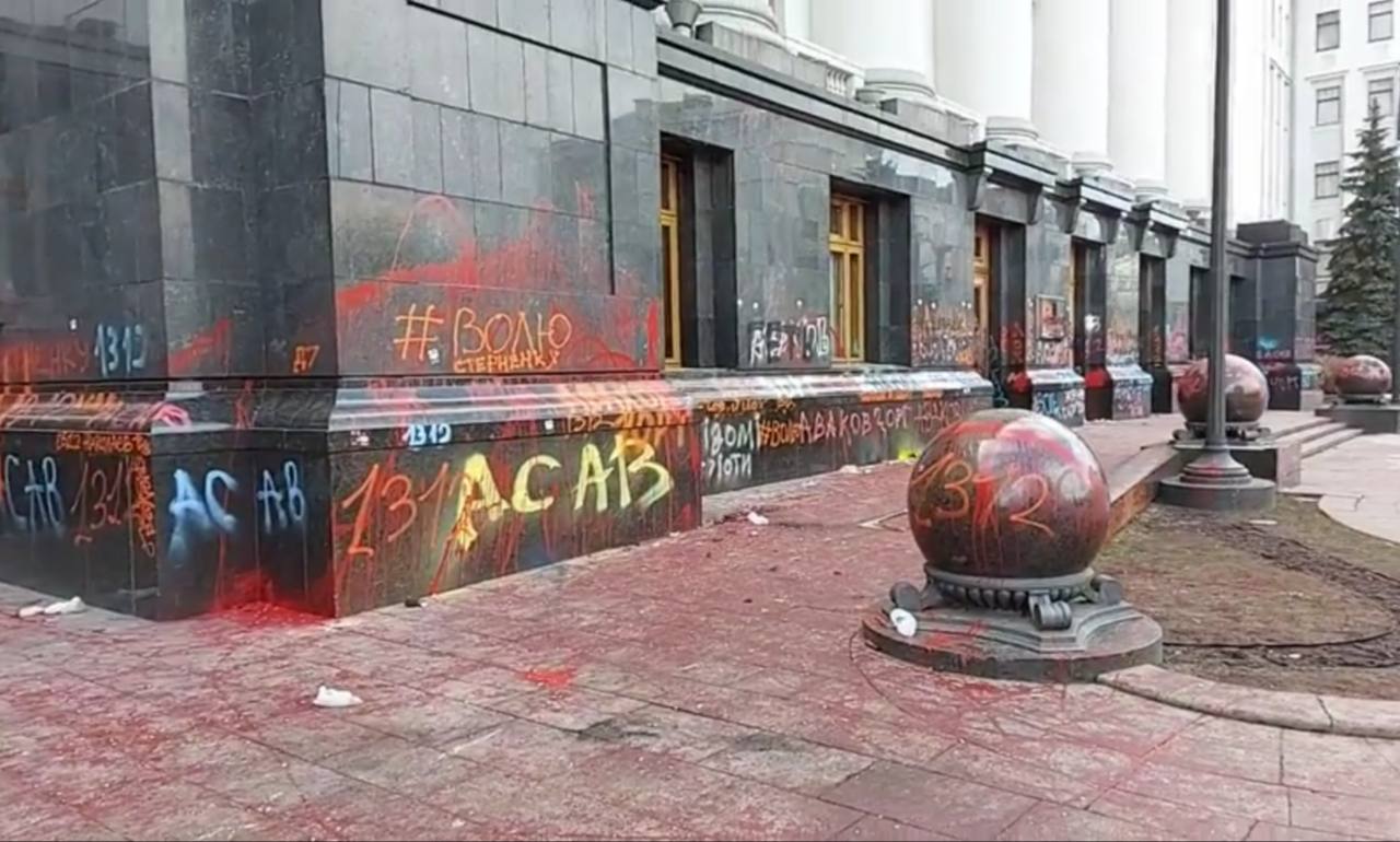 Также митингующие разбили стекло одной двери Офиса президента. Впоследствии полиция задержала одного из участников акции Владислава Сорда (Стафийчука). Ему инкриминируют ч. 4 статьи 296 (хулиганство), санкция предусматривает 3-7 лет лишения свободы. Заместитель министра внутренних дел Антон Геращенко отметил, что полицейские задержали человека, «который бил стекла в дверях Офиса президента».