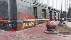 20 марта у Офиса президента состоялась акция в поддержку Сергея Стерненко, ее участники бросали в здание файеры и подожгли табличку «Президент Украины».