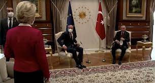 На переговорах между Европейским союзом и Турцией произошел дипломатический конфуз: главе Еврокомиссии Урсуле фон дер Лейен не предложили стул и она была вынуждена сесть на диван. Хотя сам президент Турции Реджеп Эрдоган и представитель ЕС Шарль Мишель сидели на стульях.