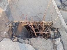 На Варваровском спуске, который ведет к яхт-клубу и 8 причалу, провалился асфальт на тротуаре.