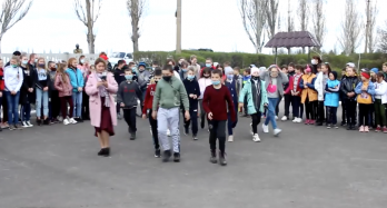 После окончания выступлений снова включились колонки и дети под церемониальную музыку заняли все места в автобусе, помахав руками в камеры.