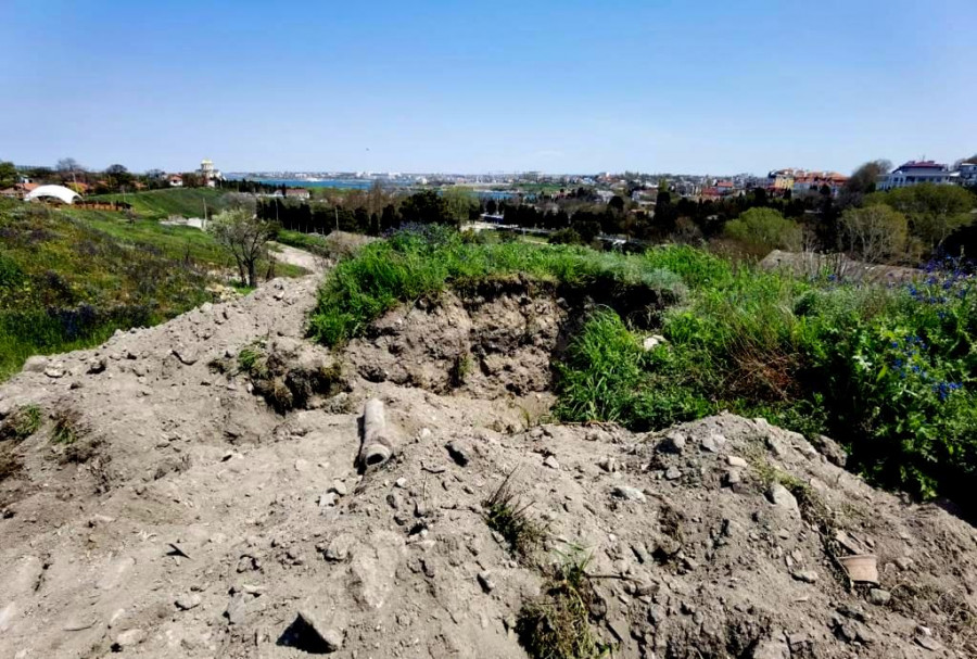 Россияне начали рыть античную памятку под Севастополем, после чего развороченной земле остались лежать остатки древнегреческих керамических изделий.