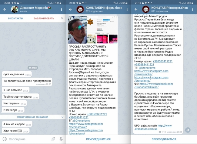 Угрозы появились в радикальном телеграм-канале «Концлагерь. Информ.блок». Неизвестные авторы возмущаются, что флаг Израиля «осквернил Киев — мать городов русских». Владельца бизнеса назвали «еврейским животным». Также в общий доступ выложили личные данные главы компании и адрес офиса.