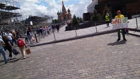 В столице РФ полицейские увели в участок мужчину, который устроил акцию возле мавзолея Ленина. На пикет он принес плакат с обращением к Ленину: «Вставай, у нас опять царь».
