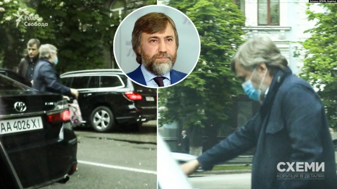 Вадим Новинский выезжал с территории Офиса на автомобиле с номерными знаками, которые закреплены за другим авто (так называемые номера прикрытия), сообщают журналисты программы «Схемы».