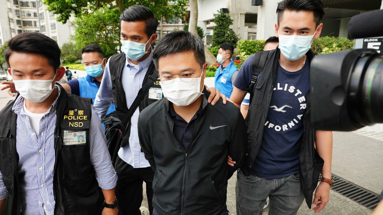 В заявлении гонконгской полиции говорится, что четверо мужчин и одна женщина в возрасте от 47 до 63 лет были арестованы «за сговор с иностранным государством или с внешними элементами с целью создания угрозы национальной безопасности».