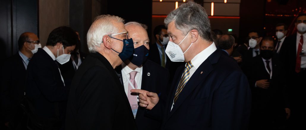 — Я получил подтверждение, что господин Боррель планирует посетить Украину. Я ему настойчиво посоветовал, и он это полностью воспринял, чтобы визит не ограничился только Киевом, а он лично поехал на линию соприкосновения, на фронт, и убедился в том, как развиваются события. Я думаю, что это облегчит скоординированную позицию Европейского Союза по поддержке нашего суверенитета, — сказал Петр Порошенко.