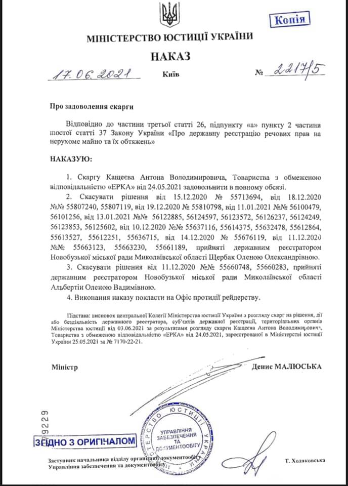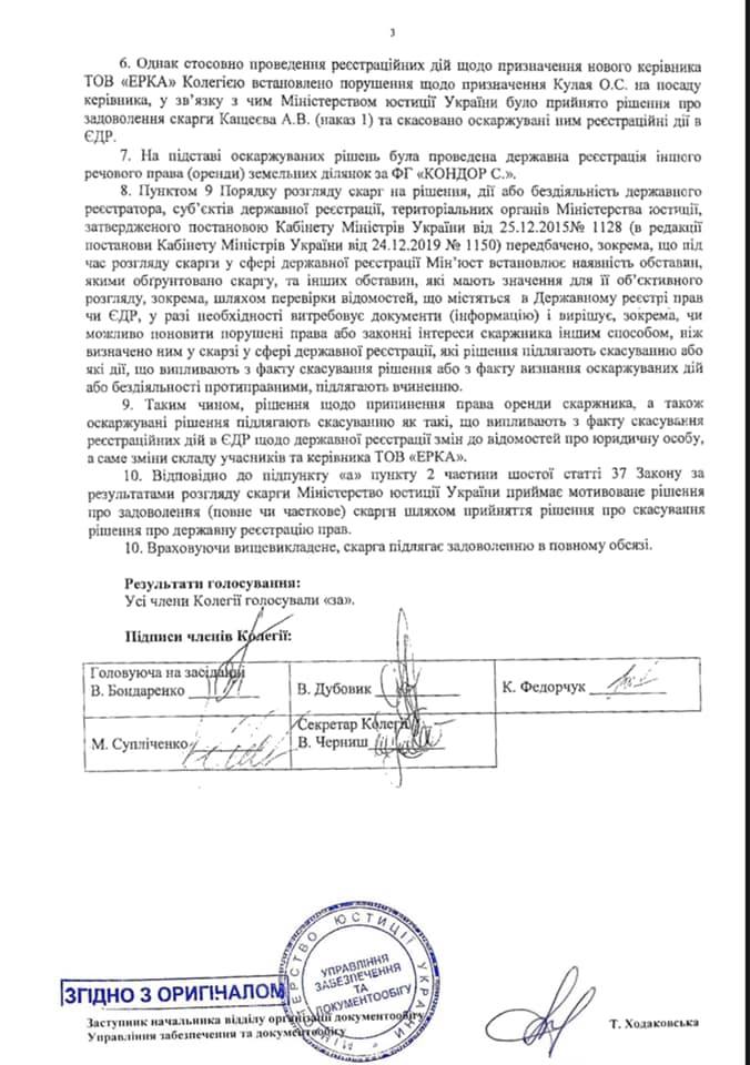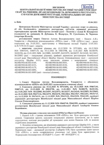 Он напомнил, что антирейдерская комиссия Министерства юстиции признала действия регистратора Олеси Душейко и Александра Воротынцева противозаконными и отменила регистрационные действия, направленные на смену собственников предприятия «ЕРКА», арендующего поля в селе Новоингулка. Тогда, по словам Дениса Жело, Александр Воротынцев через «чёрного» регистратора пытался совершить рейдерский захват предприятия.