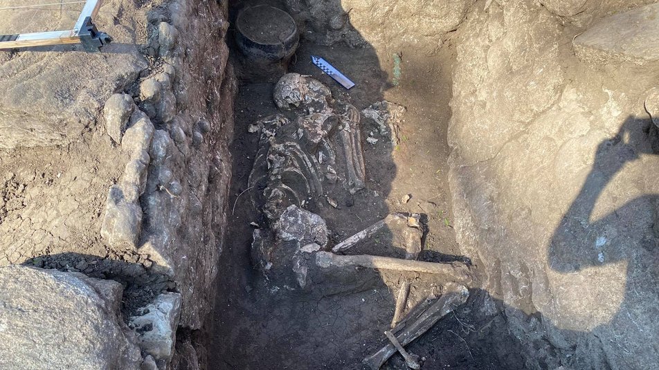 Рядом с каменной могилой, которую называют циста, найдено и другое захоронение, а также горшок и мясная еда, которую положили в могилу, остатки деревянной чаши с бронзовой оковкой. Археологи отмечают, что это довольно редкая находка.