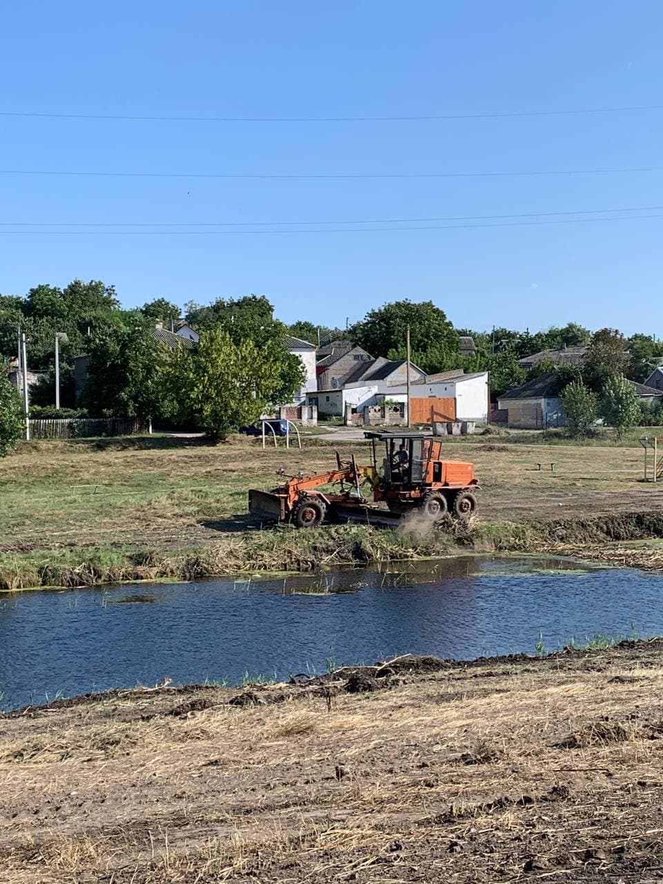 В публикации отмечают, что после задействования техники на участке, которая расчистила ил и камыши, на земле остались канавы, поэтому на выходных линию берега выровняли грейдером.