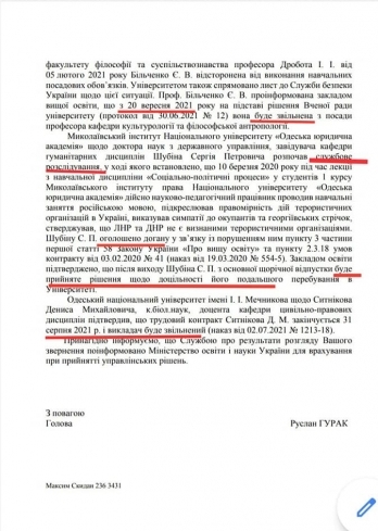 Профессор Николаевского института права Национального университета «Одесская юридическая академия» Сергей Шубин, который активно распространяет в соцсетях запрещенную коммунистическую символику, пропагандирует русский язык и идеи «ЛНР» и «ДНР», оказался под риском увольнения. После жалоб от учеников и активистов руководство академии объявило ему выговор.