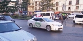Телеканал «Рустави-2» разместил кадры, на которых можно увидеть сигналящие машины, протестующих с флагами, высовывающихся из окон микроавтобусов.