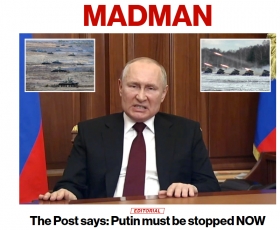 — Путин, который в понедельник разглагольствовал как злодей из фильма о Джеймсе Бонде, критиковал Никиту Хрущева прежде всего за то, что он «позволил» Украине быть своей собственной страной, показывая, что он искренне верит, что может вернуть советскую империю. В прямой войне с НАТО это было бы невозможно. Но с колеблющимся, разделенным Западом это пугающе возможно <...> Что Путин делает дальше? Прибалтика? Где конец этому? Америка просто проигнорирует, — задается вопрос в тексте.