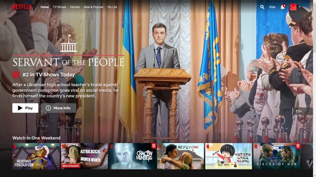 Сериал «Слуга народа» занял второе место в рейтинге сериалов Netflix