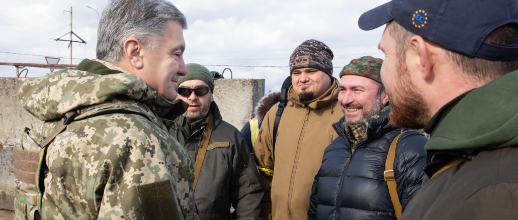 — Мы должны усилить и приравнять добровольческие подразделения к бойцам терробороны Вооруженных Сил. Дать им возможности социальной защиты. Если, не дай Бог, он ранен или погиб, то страхование по компенсациям, чествование героев и предоставление всех других прав, чтобы было выровнено. Мы этот законопроект предложили, и надеюсь, что это будет реализовано, — говорит Петр Порошенко.