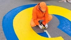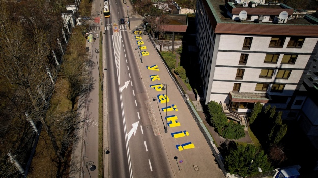 На пешеходной дорожке у посольства РФ в Варшаве появилась гигантская надпись «Слава Украине»