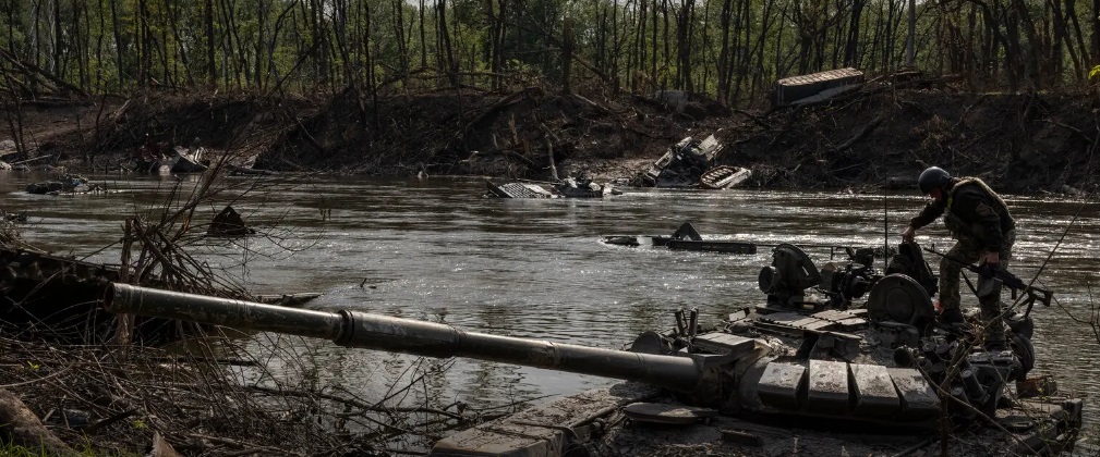 Корреспондент The New York Times побывал на месте событий и увидел на берегу реки картину погрома: взорванные танки, обломки понтонных мостов, груды срезанных взрывами веток и тела российских солдат, некоторые их которых наполовину утопают в грязи, сообщает Украинская правда.