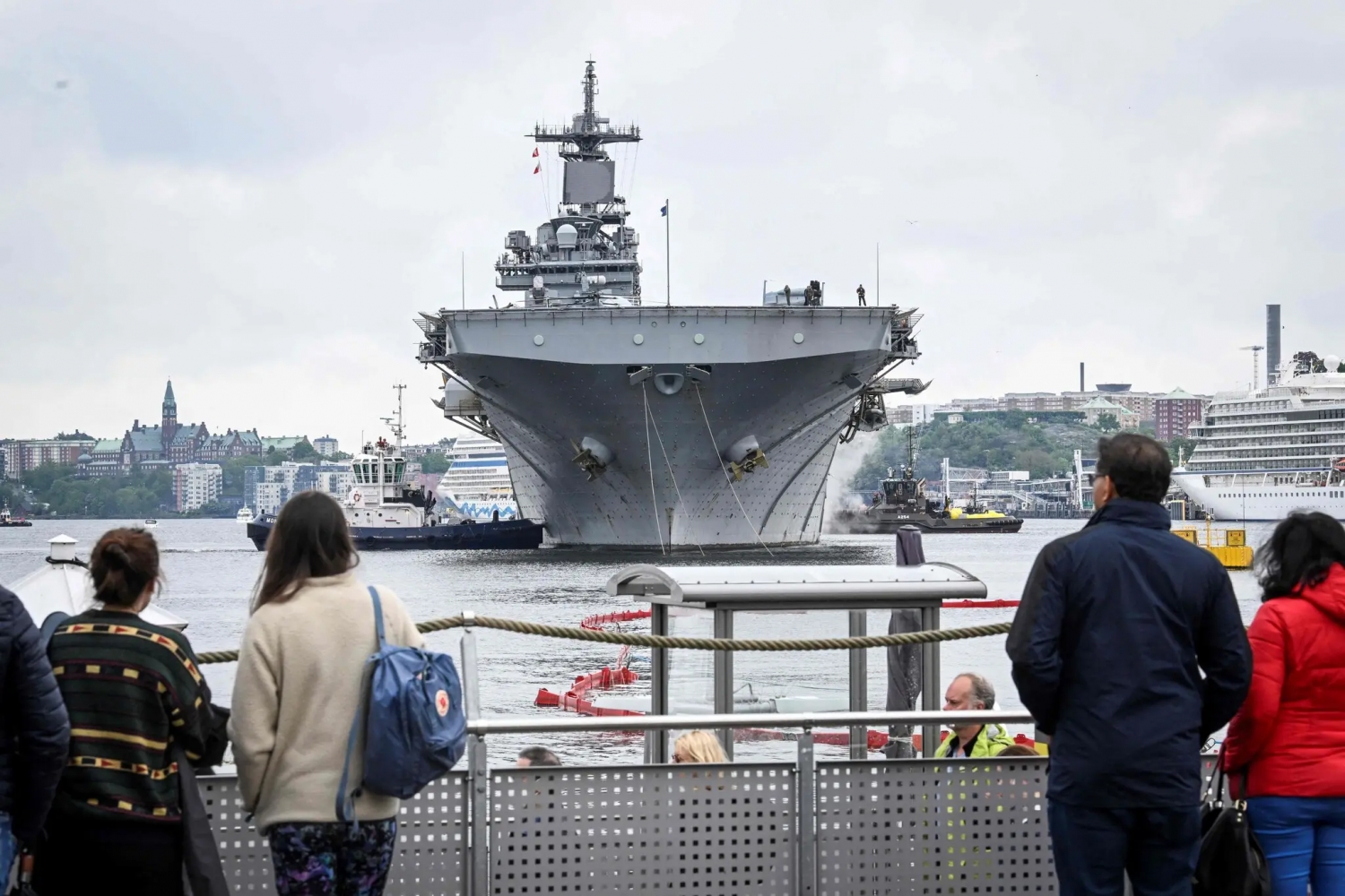 Десантный корабль США USS Kearsarge, способный перевозить до 2500 морпехов и матросов при 26 боевых самолетах, пришвартовался в порту Стокгольма.