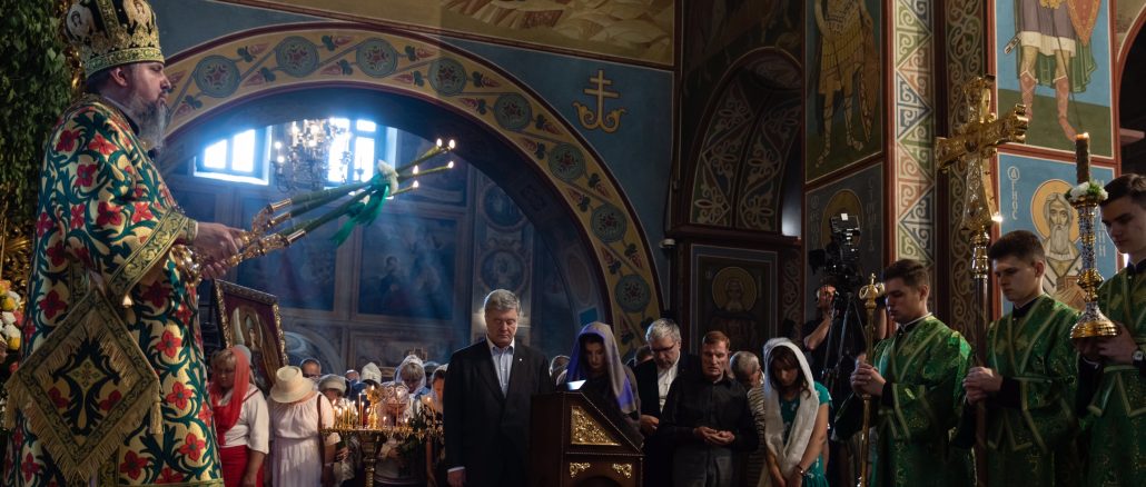 Петр и Марина Порошенко в день Святой Троицы в Свято-Михайловском Златоверхом соборе приняли участие в богослужении, которое возглавил Блаженнейший Митрополит Эпифаний.