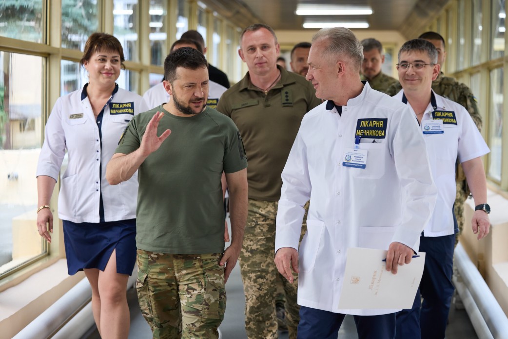 В рамках рабочей поездки в Днепропетровскую область Президент Владимир Зеленский посетил раненых военнослужащих Вооруженных Сил Украины, которые проходят лечение в Днепропетровской областной клинической больнице им. И. Мечникова. С начала полномасштабной агрессии России против Украины заведение стало оперативным центром оказания помощи раненым военным и гражданским.