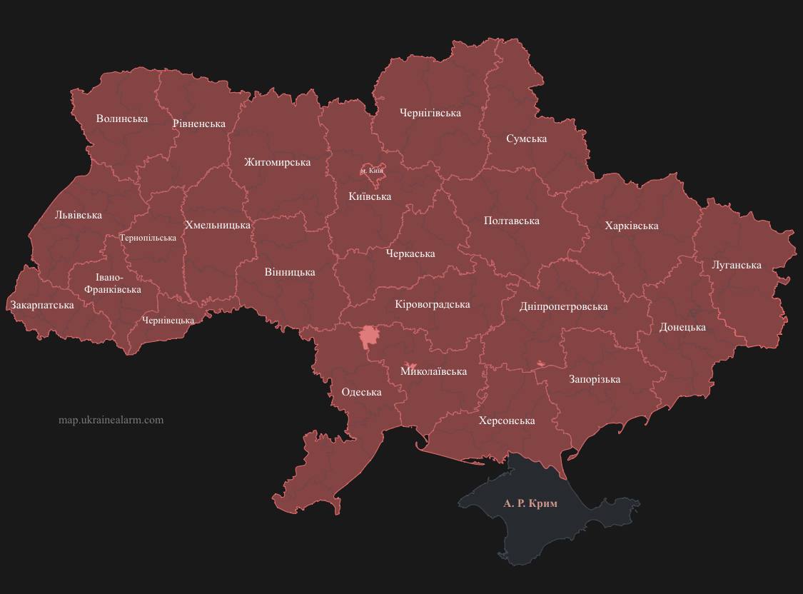07:12 Повітряна тривога у всіх регіонах України, окрім окупованого Криму