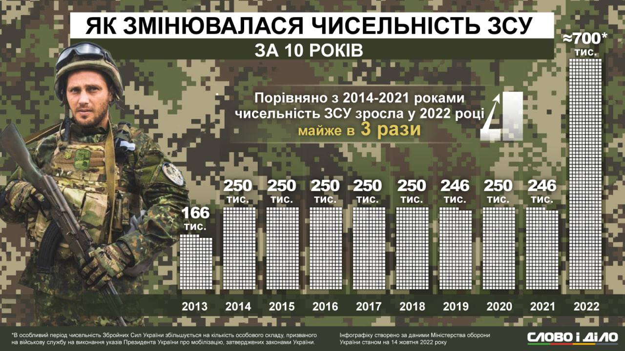 А в 2013 році в лавах ЗСУ взагалі було лише 166 тисяч осіб.
