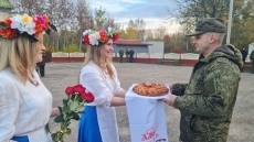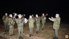 Як повідомляє білоруське міноборони, російських військових радо зустрічають з хлібом і сіллю. А також з музикою.