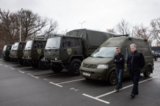 — Там бронированный микроавтобус, который идет в подразделение разведки. Это грузовики DAF, которые уже завтра вы увидите на Востоке. Мы сделаем так, чтобы у большинства бригад были грузовики, артиллерийские тягачи, укомплектованные ЗУшками для зенитной защиты. Это машина скорой помощи с сверхсовременным оборудованием, с аппаратом искусственной вентиляции легких и дефибриллятором, с очень сложной аппаратурой. Когда удается купить пикапы, они тоже идут к нашим бойцам.