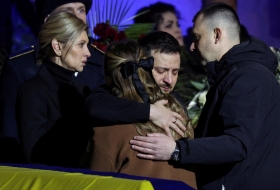 В субботу президент Владимир Зеленский с супругой, премьер Денис Шмигаль и другие чиновники приняли участие в церемонии прощания с руководителями и работниками МВД, погибшими в результате падения вертолета в Броварах.