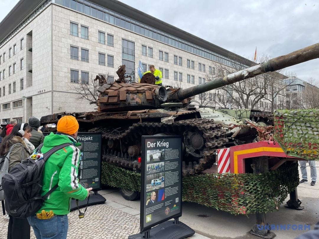 — Эта презентация уничтоженного российского танка в Берлине является важным политическим сигналом по теме военных преступлений России в Украине, а также символом несокрушимости духа украинского народа в борьбе за свою свободу, — сказал накануне годовщины нападения посол Украины Алексей Макеев.