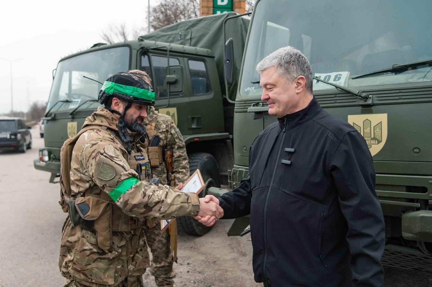 Лидер «Европейской Солидарности» Петр Порошенко во время поездки в Донецкую область передал грузовики DAF, рации, дроны с тепловизорами и Старлинки в 23 отдельный стрелковый батальон, который сейчас воюет на Бахмутском направлении.
