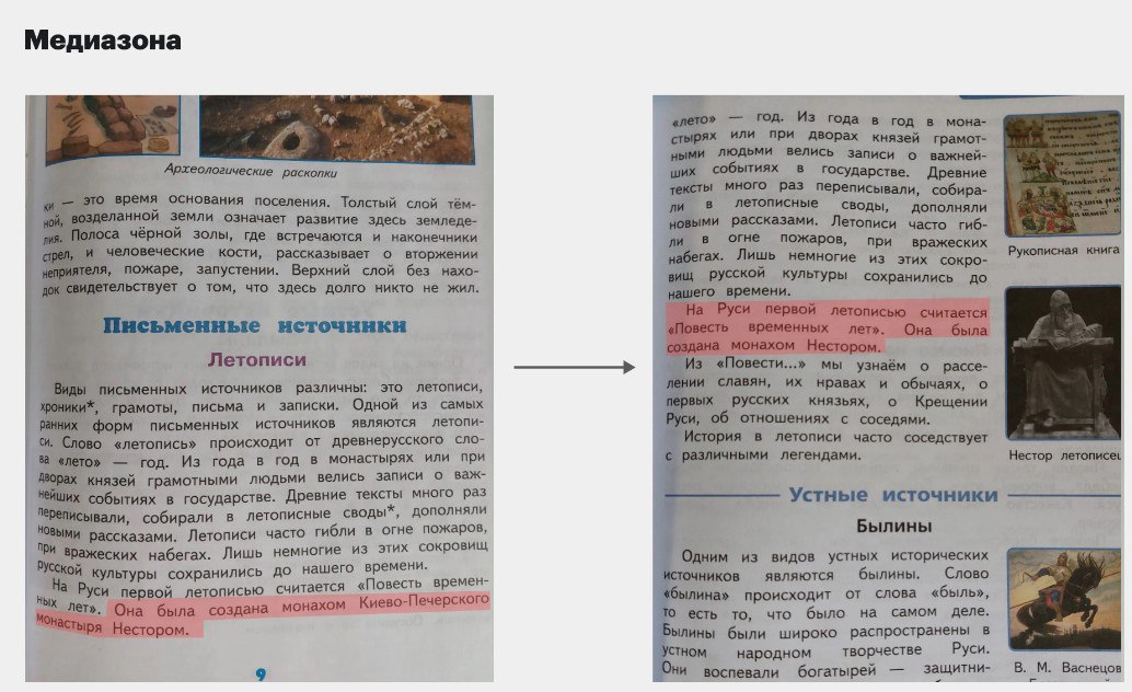 К примеру, если в старой версии «Окружающего мира» говорилось, что летопись «Повесть временных лет» написал монах Киево-Печерского монастыря Нестор. Так, в новой версии Нестор стал просто монахом без уточнения места работы.