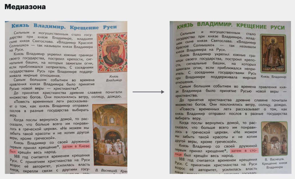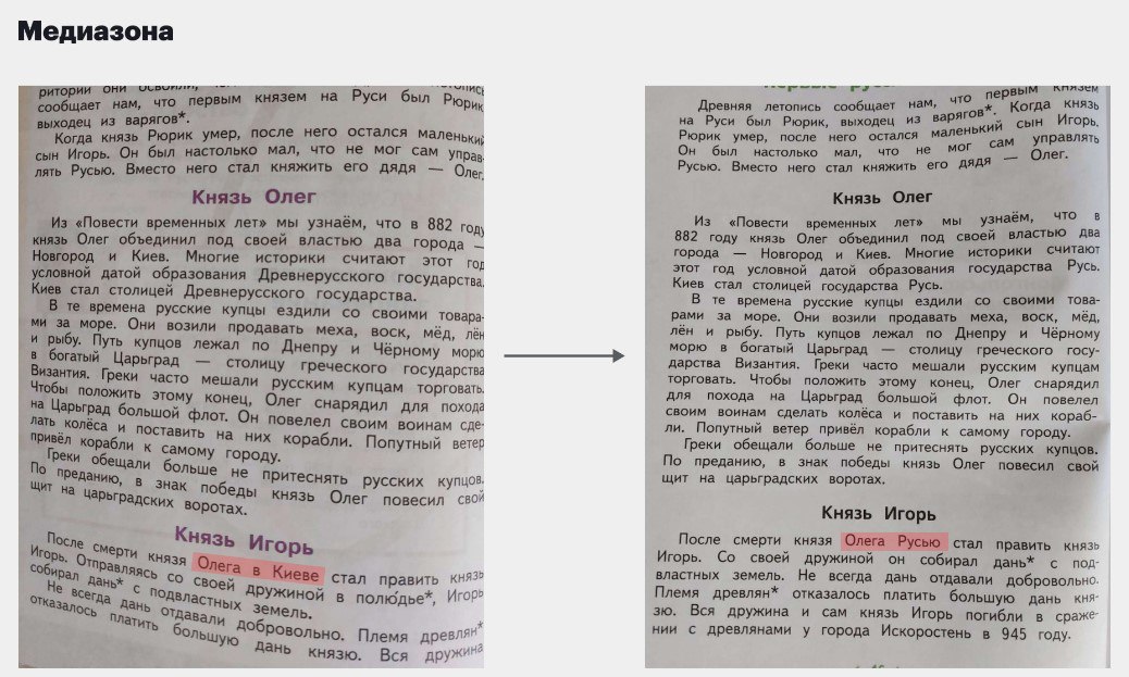 Об этом сообщает Институт массовой информации со ссылкой на «Медиазону», которая ознакомилась с несколькими страницами отредактированного учебника и сравнила их версией 2021 года.