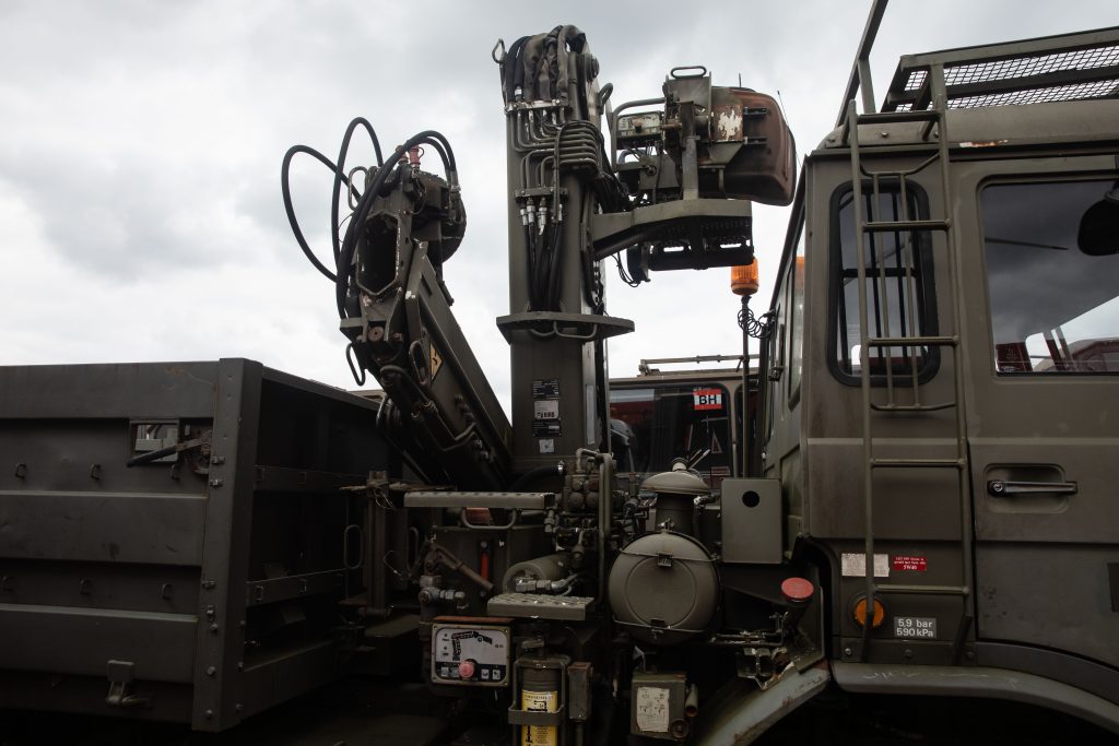 Leyland DAF 45.150 — это полноприводный пятитонный дизельный грузовик, который может оснащаться лебедкой и перевозить все, что нужно для фронта: боекомплект, продукты, воду и горючее в бочках. Часть автомобилей оборудована кранами для загрузки крупнокалиберных боеприпасов.