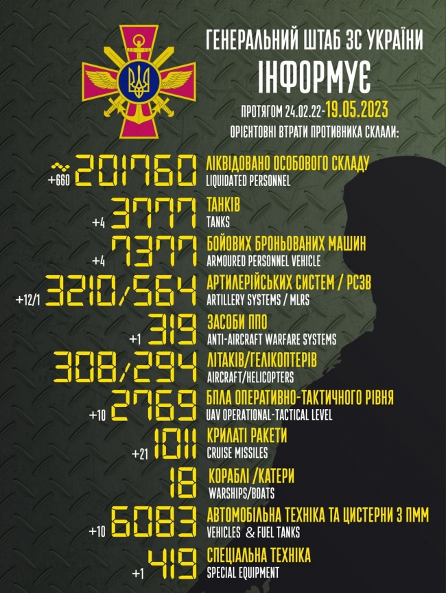 Авиация Сил обороны в течение суток нанесла 7 ударов по районам скопления российских личного состава и военной техники, тогда как ракетные войска и артиллерия поразили район сосредоточения вооружения и военной техники, состав боеприпасов, три артиллерийских подразделения на огневых позициях, зенитно-ракетный борьбы и радиолокационную станцию