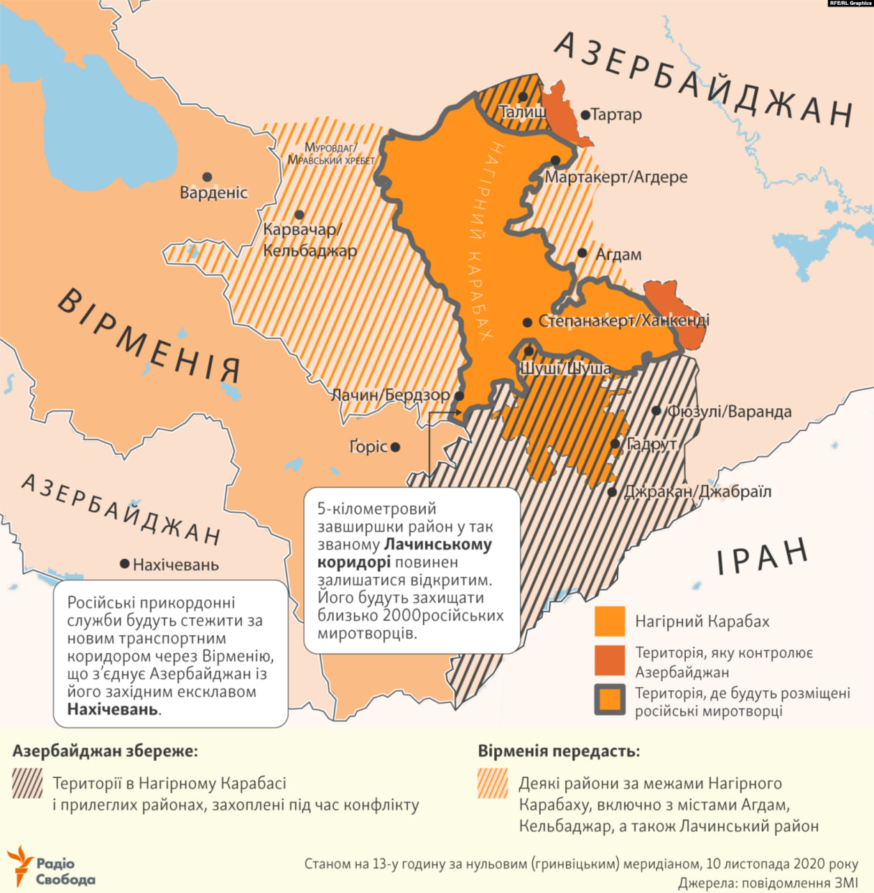 Ниже карты Нагорного Карабаха после заключенного мирного соглашения.