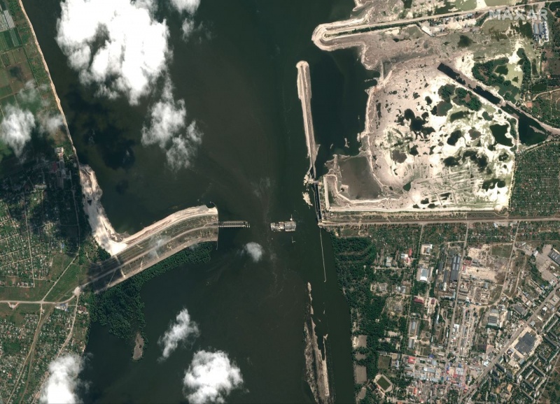 Кадры были сделаны американской частной компанией Maxar Technologies. Фото от 16 июня подробно демонстрируют нынешний вид уничтоженной плотины.
