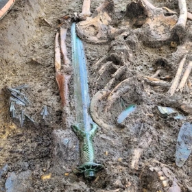 В захоронении три человека – мужчина, женщина и мальчик. Рядом с ними обнаружили ряд объектов, характерных для бронзового века, среди которых и меч с изысканной восьмигранной рукояткой.