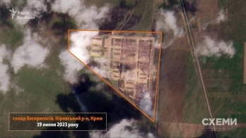 На спутниковых снимках за 19 июля видны последствия взрывов и пожаров. Это территория, которую военные эксперты идентифицировали как состав боеприпасов российской армии. Он находится недалеко от Старокрымского военного полигона в Кировском районе Крыма.