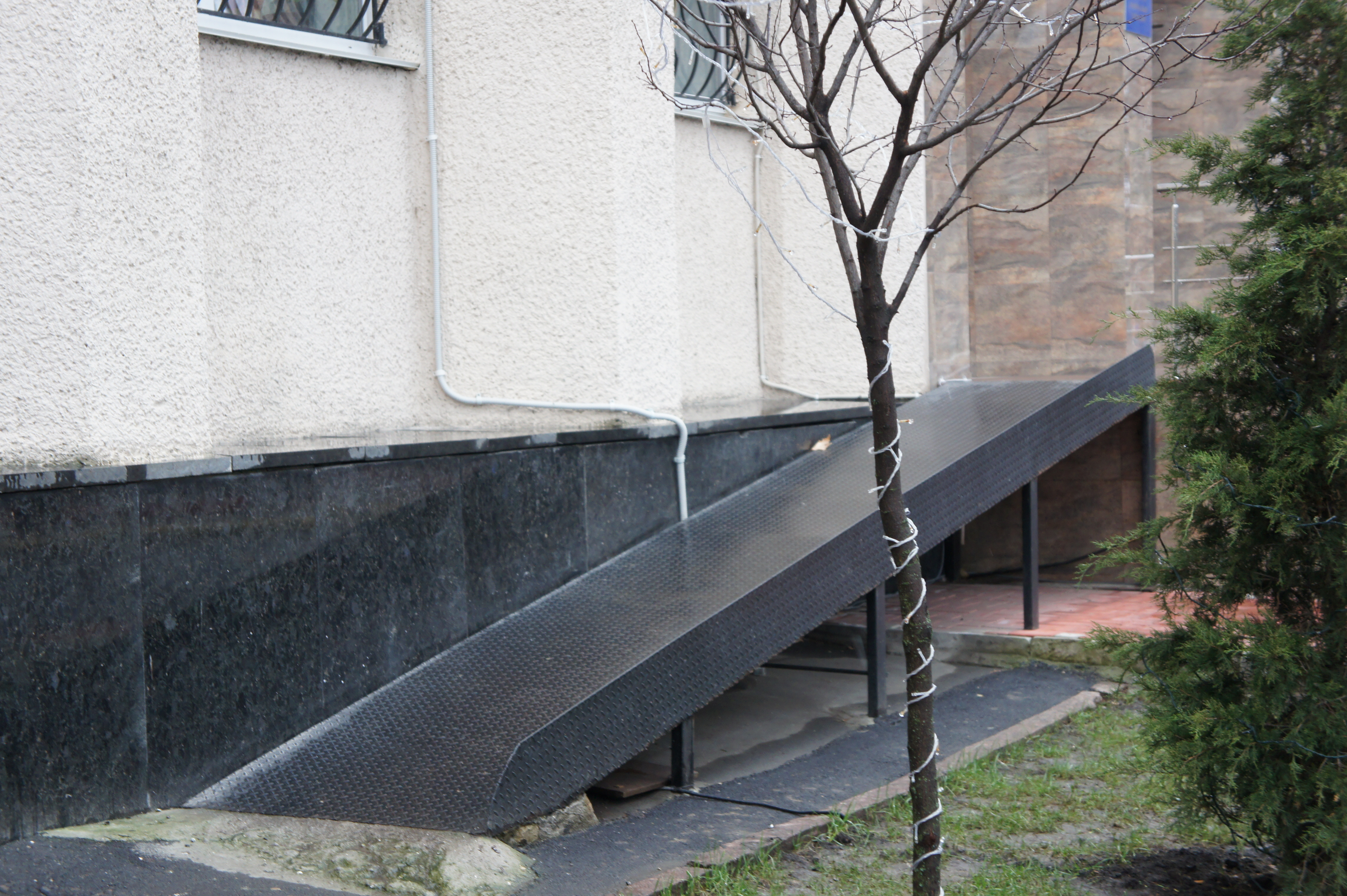На фото: железный пандус у зндания налоговой