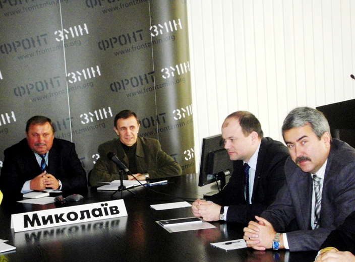 Сегодня, 15 января, кандидат в президенты Арсений Яценюк провел телемост с региональными партийными организациями «Фронта Перемен». В телемосте приняли участие и представители Николаевской областной общественной организации «Фронта Перемен» во главе с ее руководителем Николаем Романчуком, который также является генеральным директором ОАО «Вадан Ярдс Океан». В Николаеве телемост состоялся в помещении «Укртелекома» на улице Адмиральской.