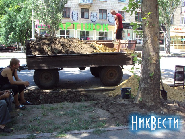 Сегодня, 12 июня, на перекрестке улиц Советская и Никольская проводились работы по укладке плитки, которые заинтересовали корреспондента НикВести.