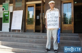 Уже не первый год скандально известный николаевец Анатолий Ильченко требует справедливости и решения по делу об избиении его адвокатом Репешко, пишут «Новости-Н». Уголовное дело то закрывают, то вообще опровергают факт избиения Ильченко. Сам же пенсионер борется с несправедливостью своим способом — пишет красноречивые плакаты и стоит с ними под госучреждениями: горисполкомом, администрациями, прокуратурами, УМВД, а также участвует с ними в митингах.